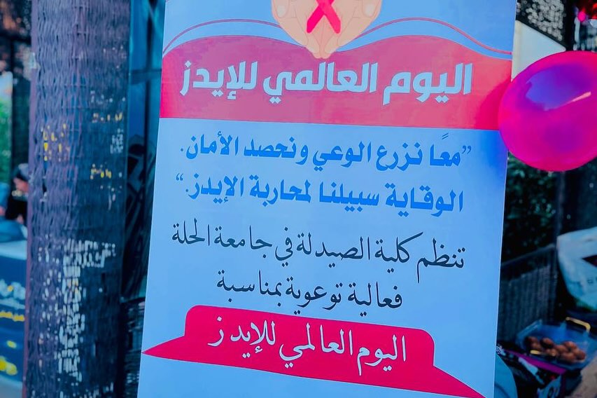The College of Pharmacy at Hillah University held a special awareness campaign to mark World AIDS Day, highlighting the importance of prevention, transmission methods, treatment options, and support available to those infected.